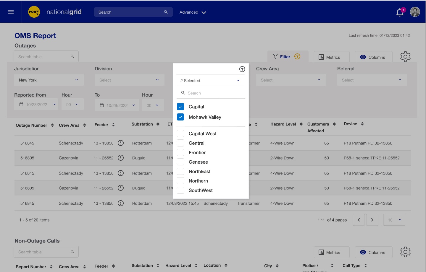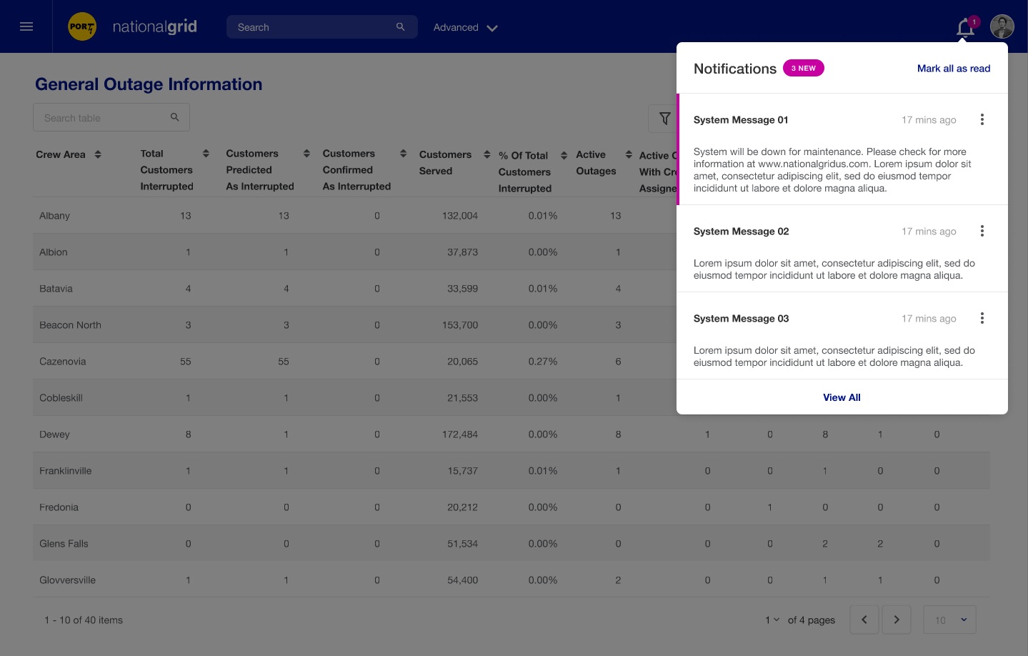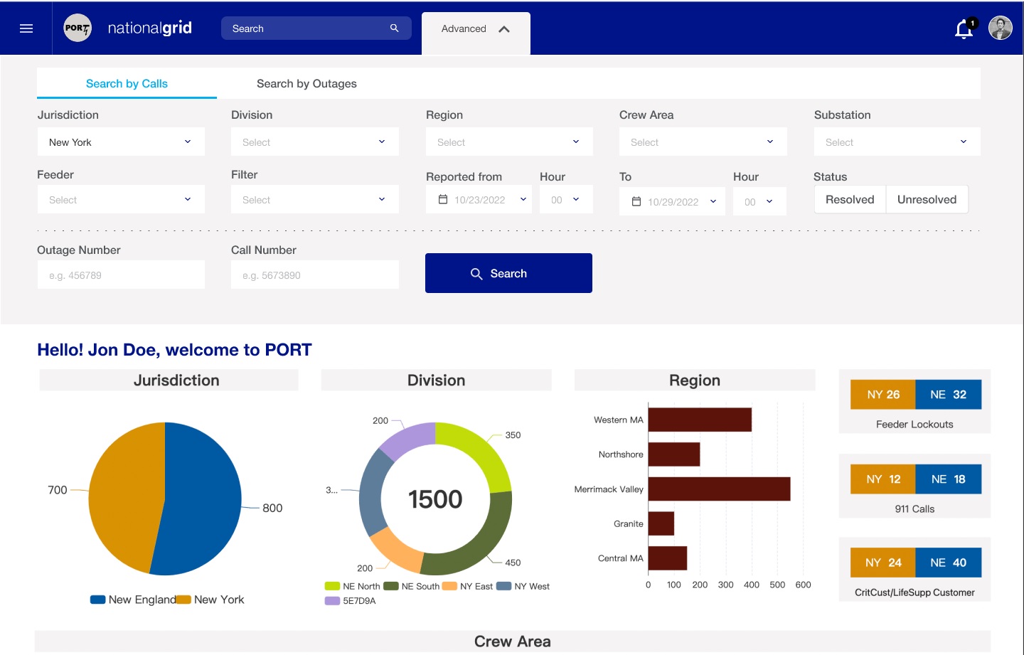PORT seeks to address these challenges by creating a unified view of power outages in both New York and Massachusetts jurisdictions. It offers users a tailored view, focusing on relevant tasks and responsibilities. The UX team conducted thorough user research, actively participated in brainstorming sessions, created detailed personas, and developed comprehensive user journey maps. Low-fidelity and high-fidelity wireframes were meticulously designed to ensure that application screens are not only visually intuitive but also facilitate quick learning and usage. Through clear and effective communication, the UX team collaborated seamlessly with diverse professionals, including PowerBI experts, React JS developers, Quality Assurance specialists, and product managers, playing a pivotal role in creating successful deliverables.